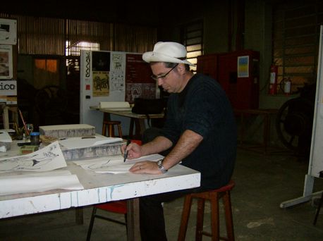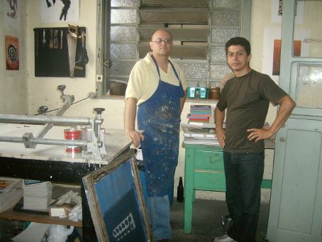 Fernando Sefrin e Flavio Gonçalves na serigrafia