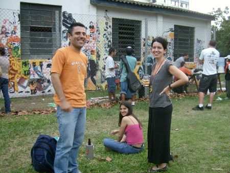 Nelson Rosa e Marilice Corona acompanham grupo Urbanóides nos fundos do museu